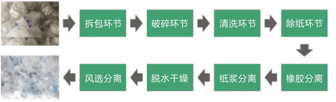整套設備從拆包到破碎-清洗-除紙-除橡膠-干燥-分離瓶嘴料均可全自動化流水生產。生產出來的成品顆粒基本達到了新料的品質,廣泛用于注塑擠出、加工造粒等領域。